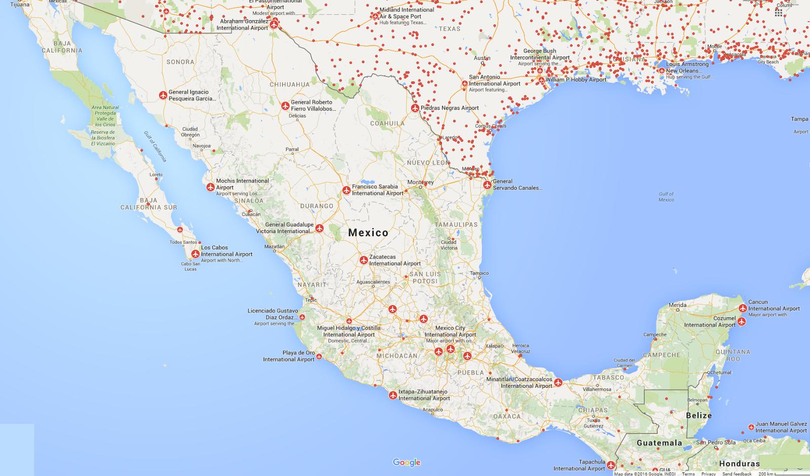 Օդանավակայաններ Մեքսիկայի քարտեզի վրա